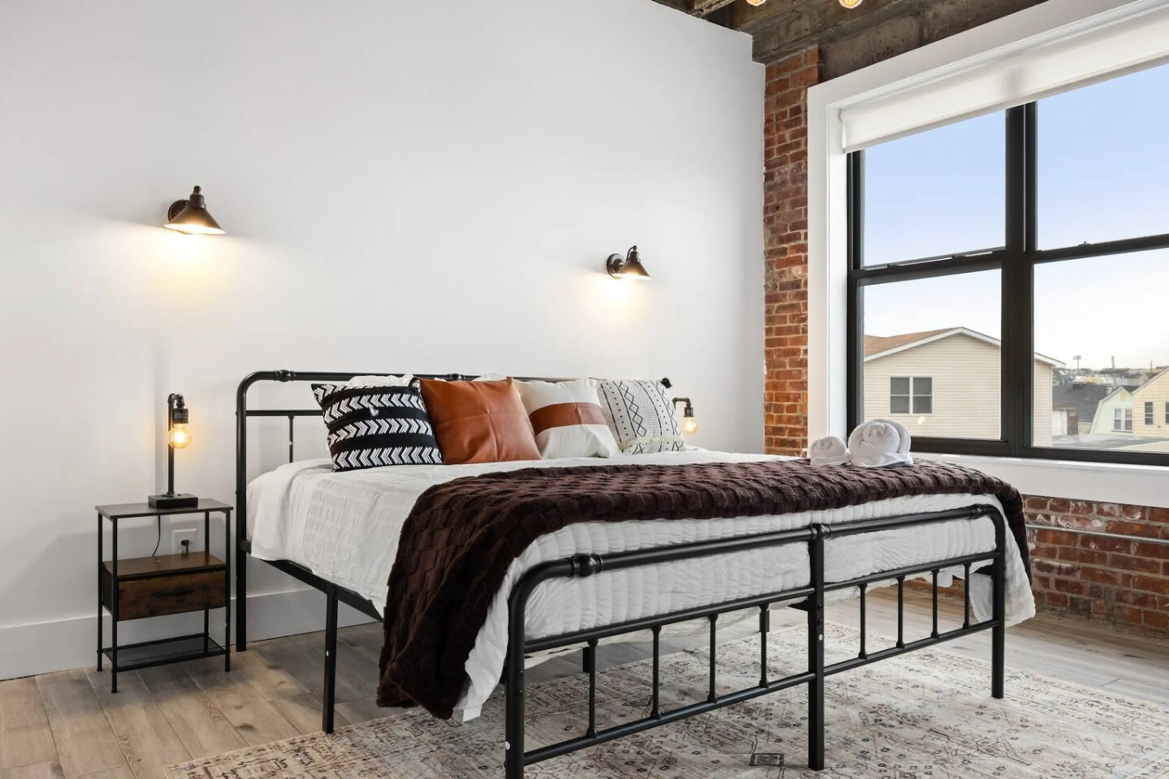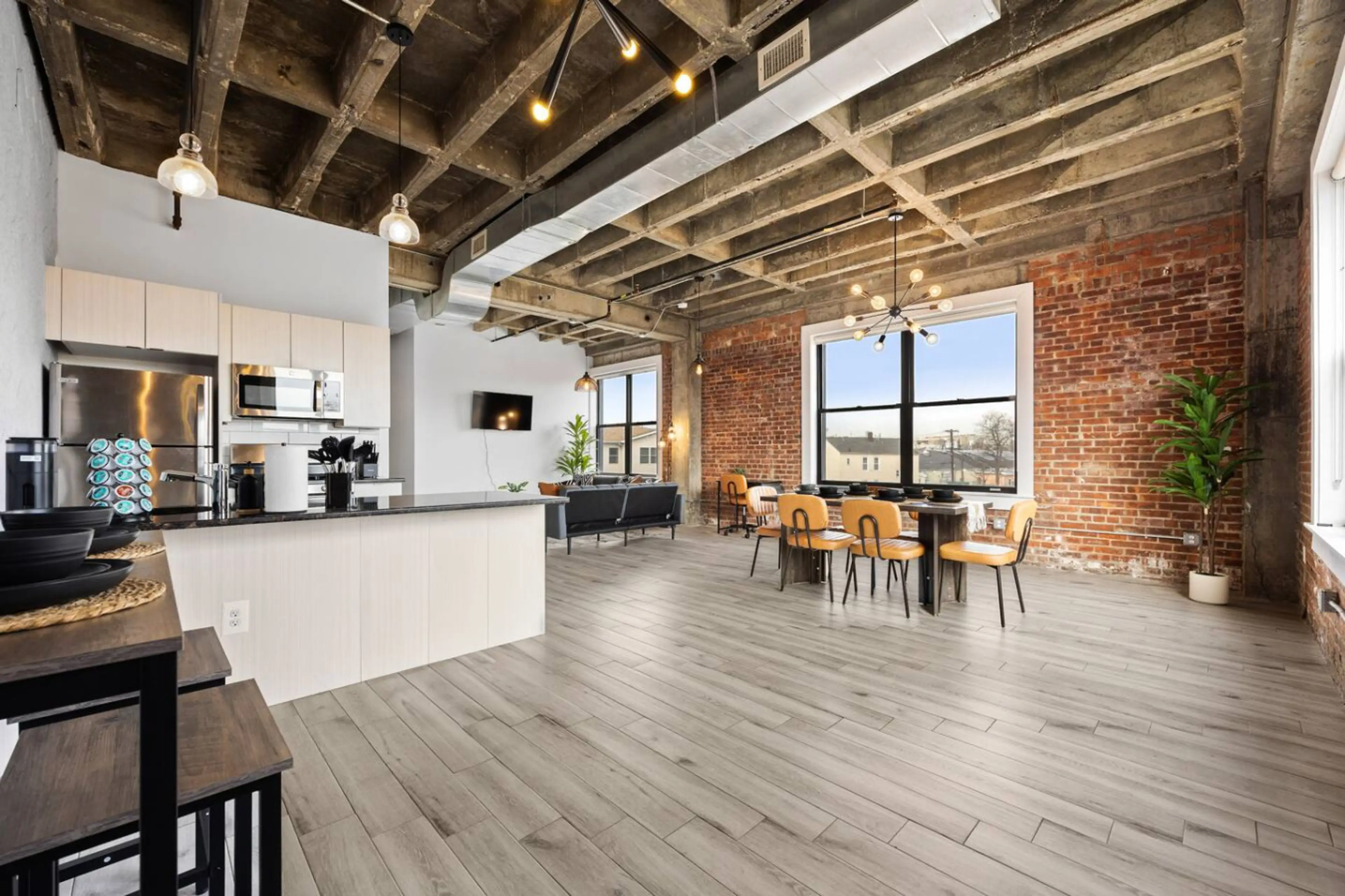 Welcome to "The Lofts at Kearny"—industrial-inspired New Jersey lofts with a short commute to NYC! This spacious loft-style retreat features exposed brick, high ceilings, and modern decor, perfect for families and groups. Enjoy fast WiFi, an in-unit W/D, a fully equipped kitchen, and a dedicated wo...