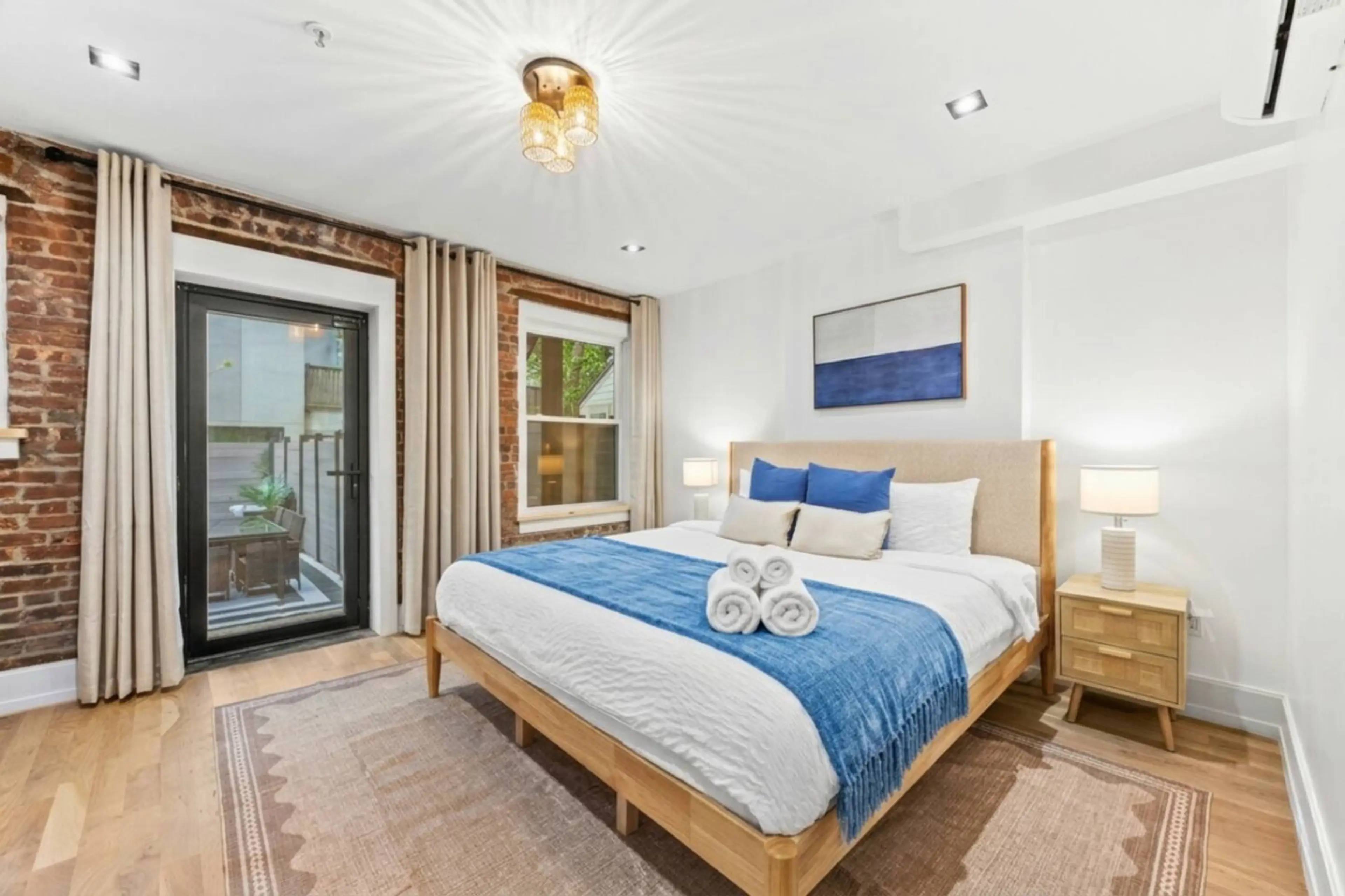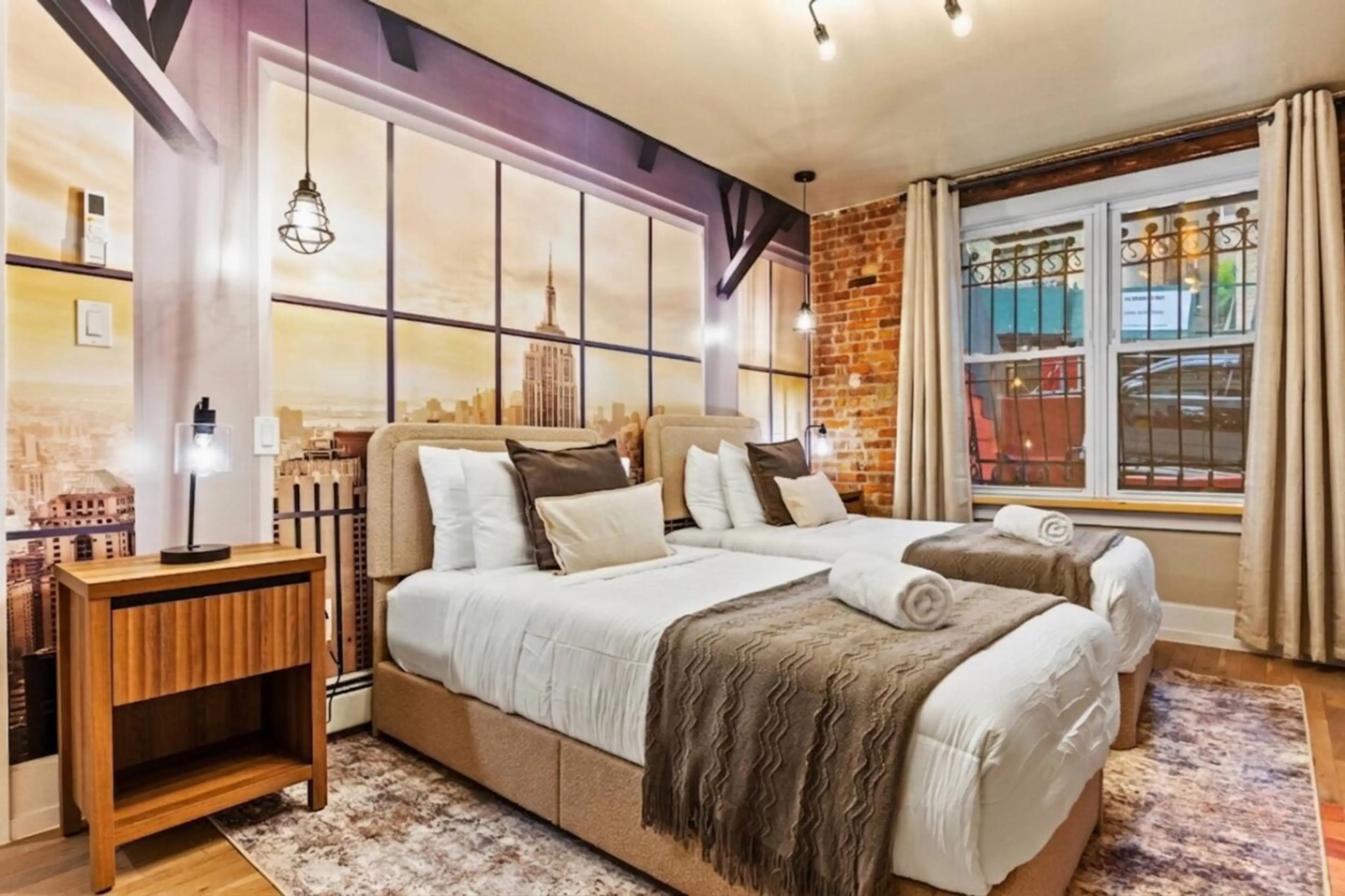 A rare Manhattan duplex built for groups who want more. Two levels, NYC-themed rooms, a private backyard with hammock, and a Broadway-inspired theater lounge downstairs. The Hudson River Room, the NYC Skyline Room, and a full kitchen make everyday comfort easy — while the in-unit washer and dryer ma...