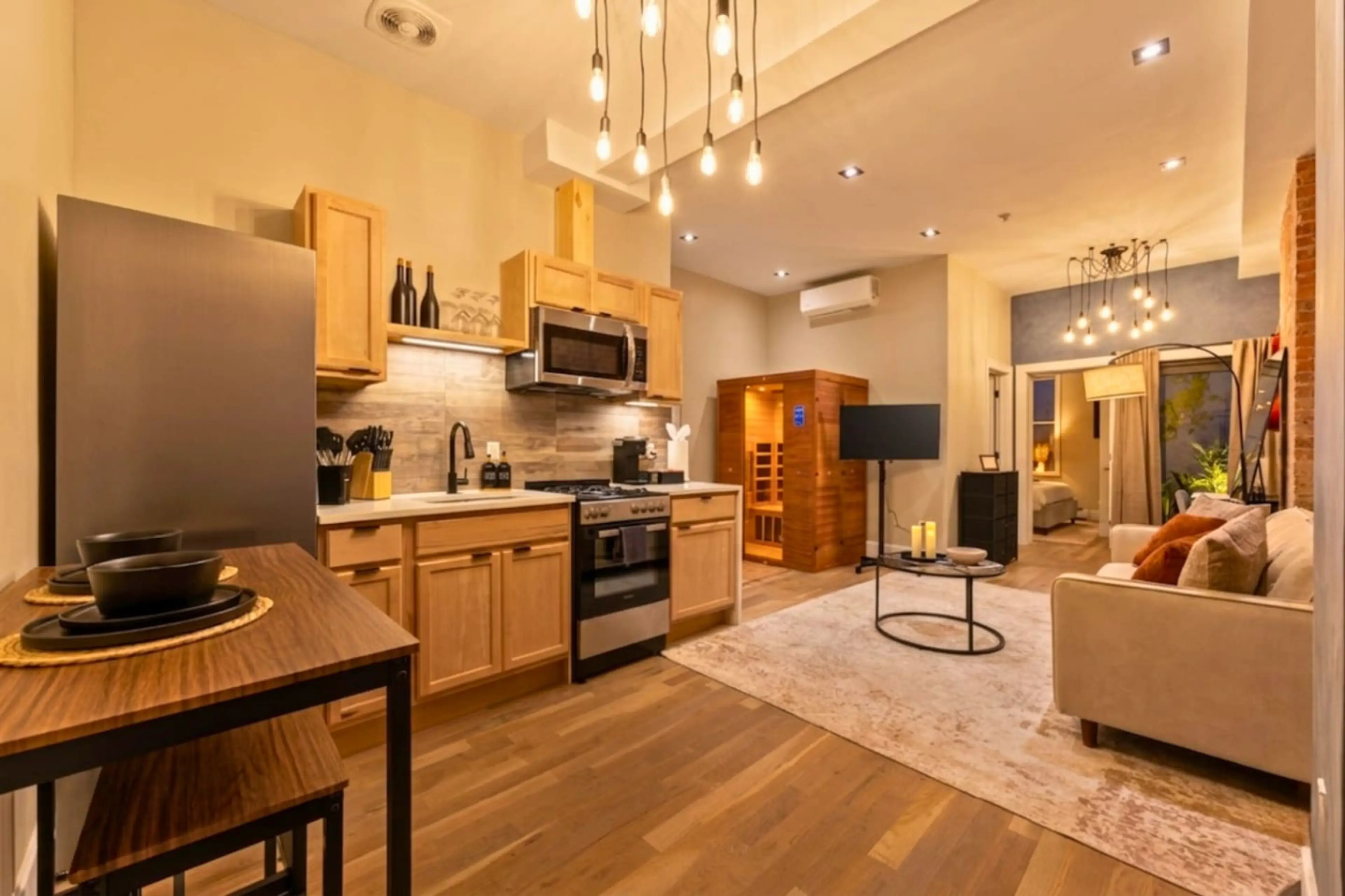 Imagine spending the day exploring Manhattan, walking by the Hudson River, grabbing coffee, seeing the city, then coming back to your own private retreat. You step inside, relax in the sauna, put on a movie, stretch out on the king bed, or sit outside in the backyard on the hammock or swing chair. I...
