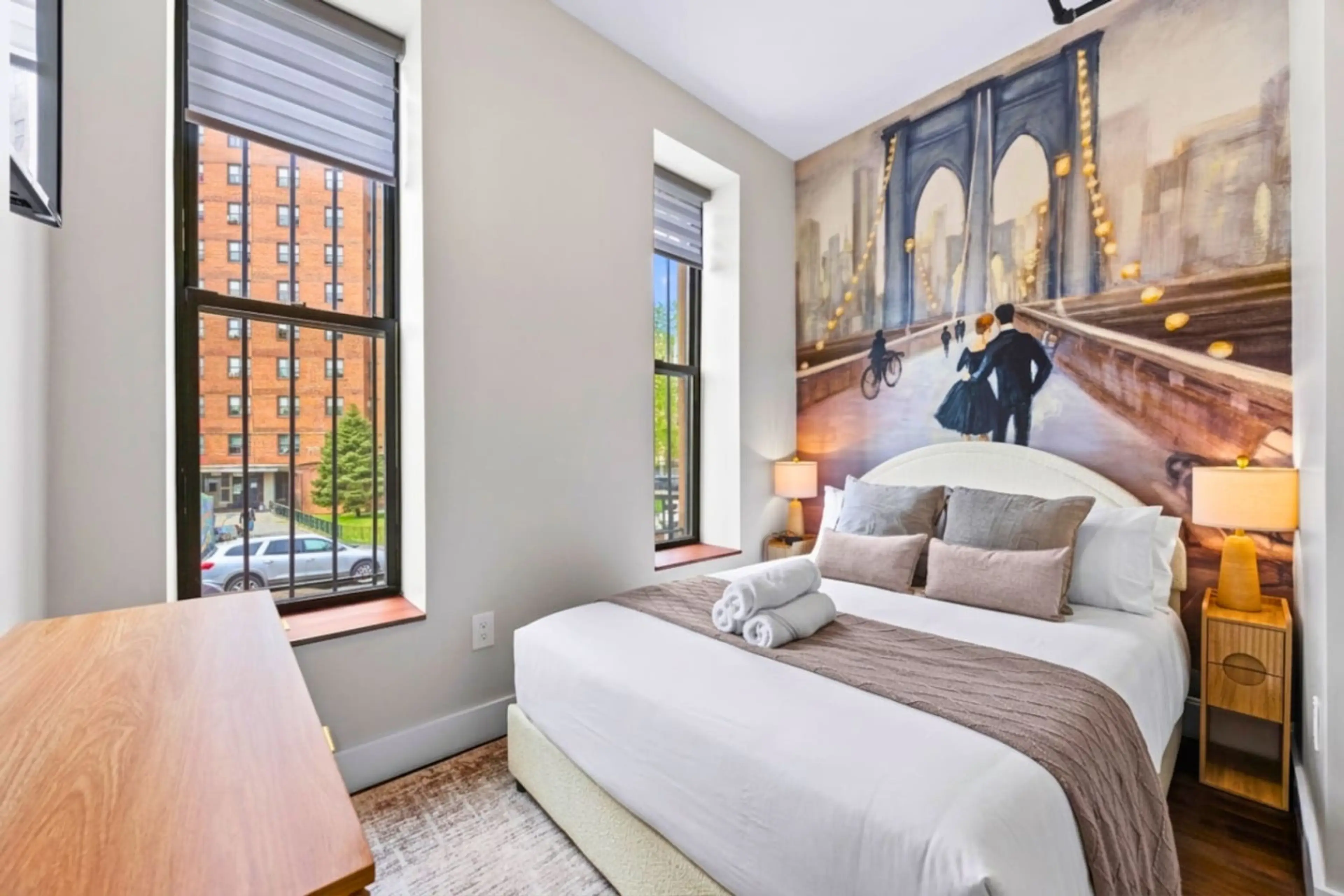 One of Brooklyn's most distinctive stays. Three bedrooms, each with its own private bathroom, each telling a different NYC story through murals and design. The Brooklyn Bridge, the Statue of Liberty, the moments that made this city iconic — all brought to life right where you sleep. A kitchenette, a...